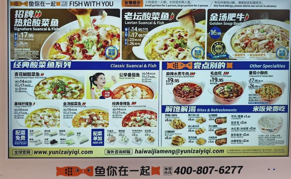 Discover the vibrant world of Fish With You Yu Ni Zai Yi Qi, where authentic Chinese fast food meets an inviting atmosphere. With over 2,500 outlets worldwide, we specialize in an array of delicious pickled fish dishes, from our signature pickled cabbage and spicy fish to savory fried skewers and refreshing drinks. Located at 1330 Fullerton Rd #108, Rowland Heights, CA, we offer a relaxed dining experience perfect for lunch or dinner. Enjoy fast service, accessible seating, and a menu designed for sharing. Join us and taste the tradition – your table is ready!